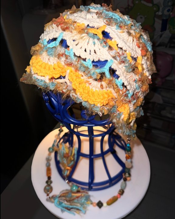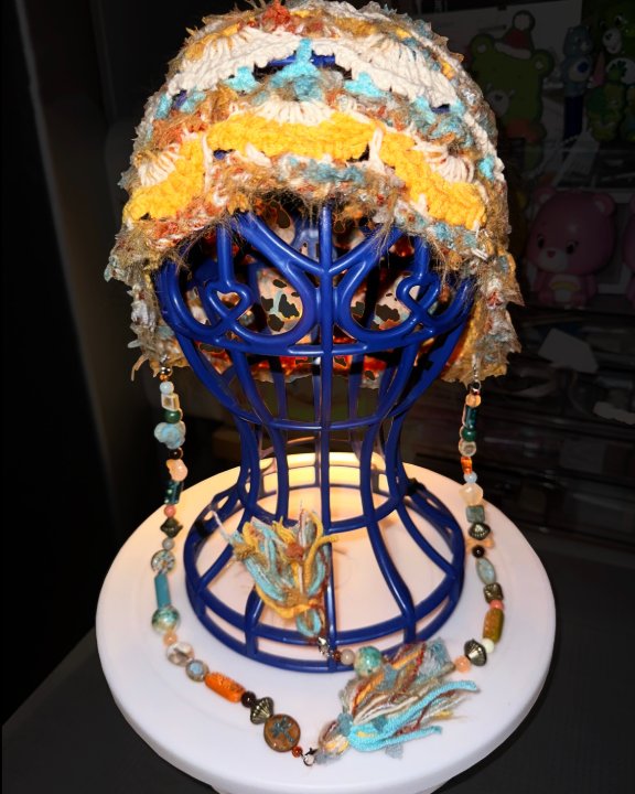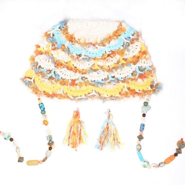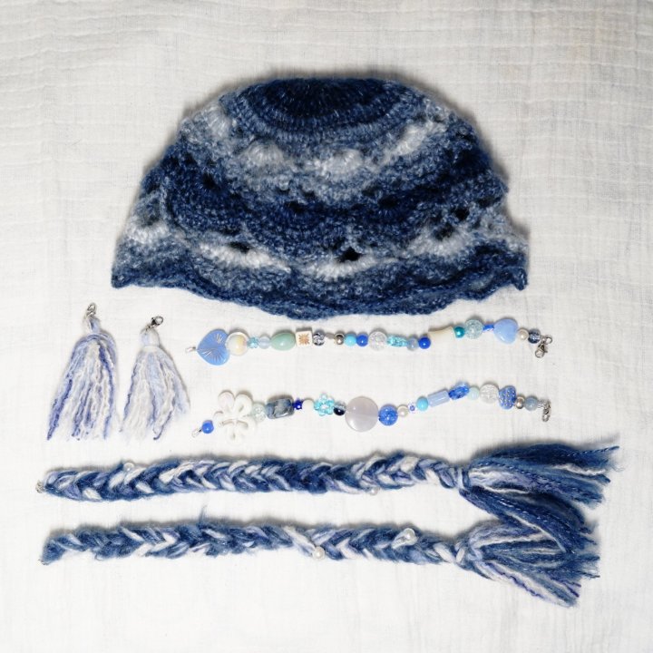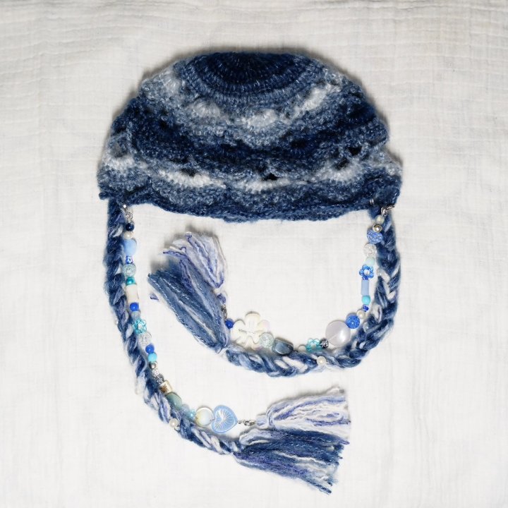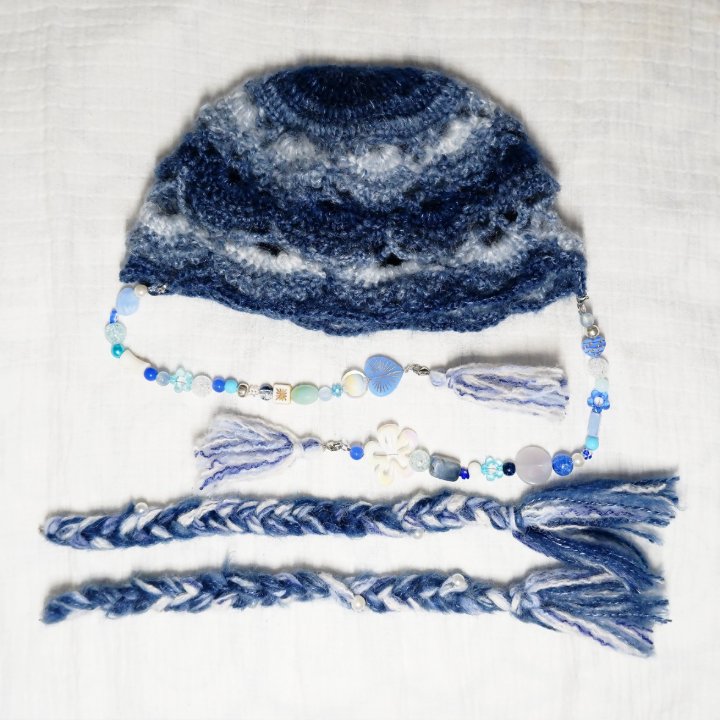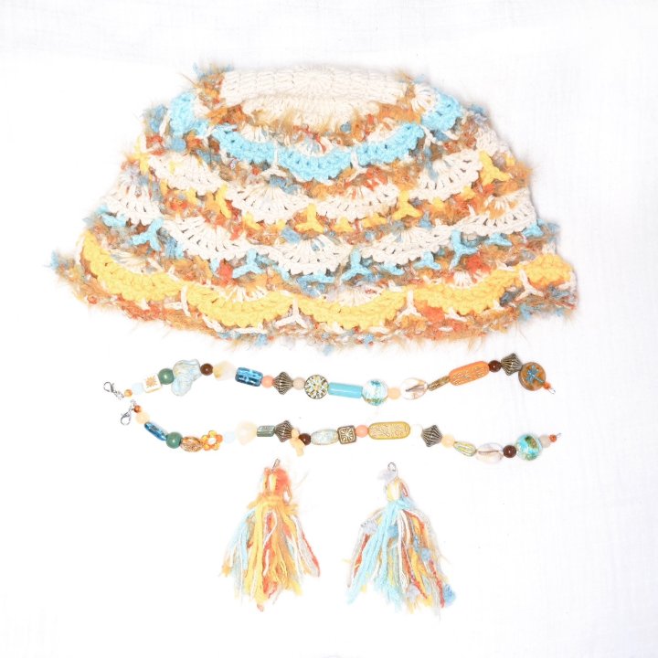 包含:帽+ 串珠/毛冷辮+結尾流蘇/蝴蝶結/羽毛 我們的手作毛冷帽子特點是可透過多種方法的拆卸和組製來成為不同飾物,能夠拆成頸鏈、耳環部件、手袋吊飾等。