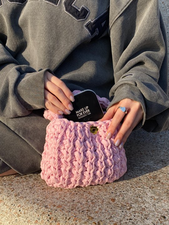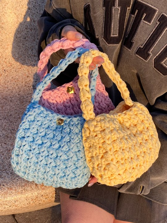 由柔軟T恤線鉤織成嘅 Minna Bag 精緻小巧,卻能裝下日常嘅隨身物品。 從顏色到尺寸都開設客製化,讓你擁有專屬嘅個性配搭。
