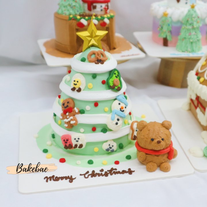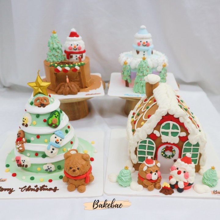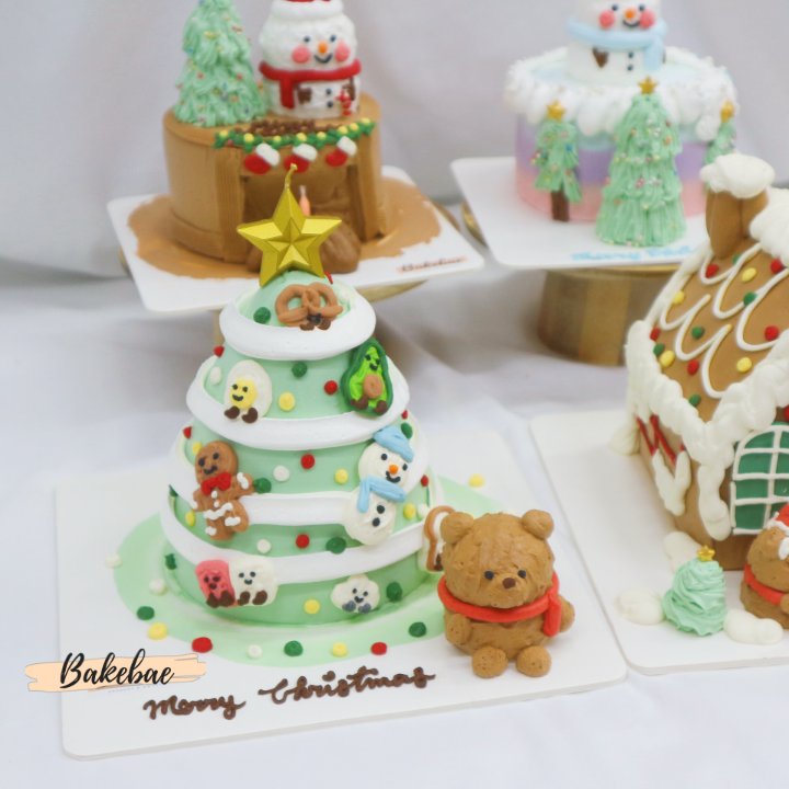 Bakebae 聖誕蛋糕限定味道: 開心果蛋糕x草莓醬 食用期限: 1-2日內食用, 冷藏保存 蛋糕祝福字句請在訂單備注輸入, 會在底板寫上 4吋:適合2-4人食用